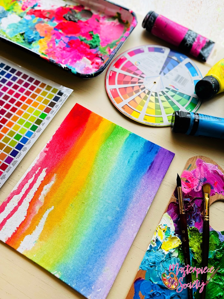 - Acrylic paint set (in the ROY G BIV colors: red, orange, yellow, green, blue or turquoise, indigo, and violet)