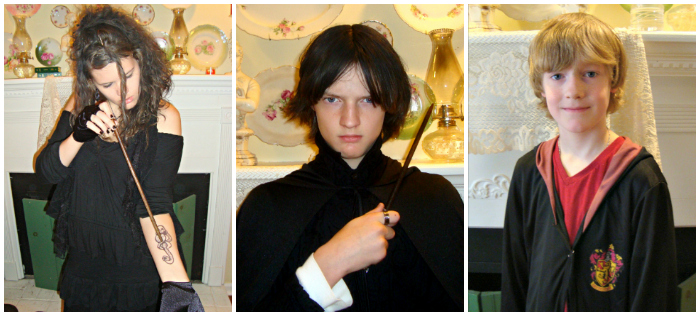Our family has always been huge Harry Potter fans. Here are a few pictures of our kids dressing up for the midnight showing of “Deathly Hallows, Part B” waay back in 2011 (Um, I think I had as much fun dressing them up as they did wearing the costumes):