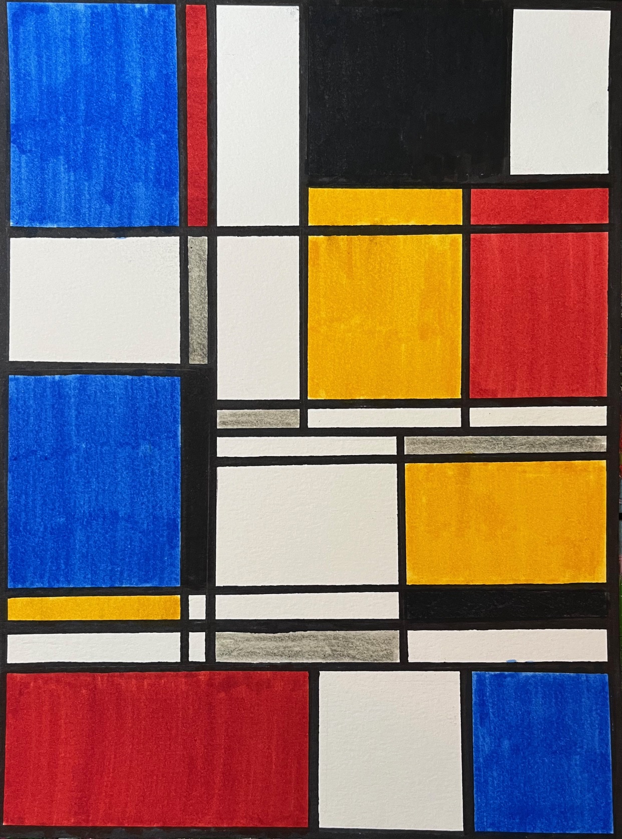 In this homeschool geometry course, students study how mathematical principles—like balance, proportion, and pattern—show up in modern and abstract art. They’ll create vibrant works inspired by artists such as Frank Stella, Victor Vasarely, Bridget Riley, Piet Mondrian, Vassily Kandinsky, M.C. Escher, Sonia Delaunay, Paul Klee, and Georges Braque.