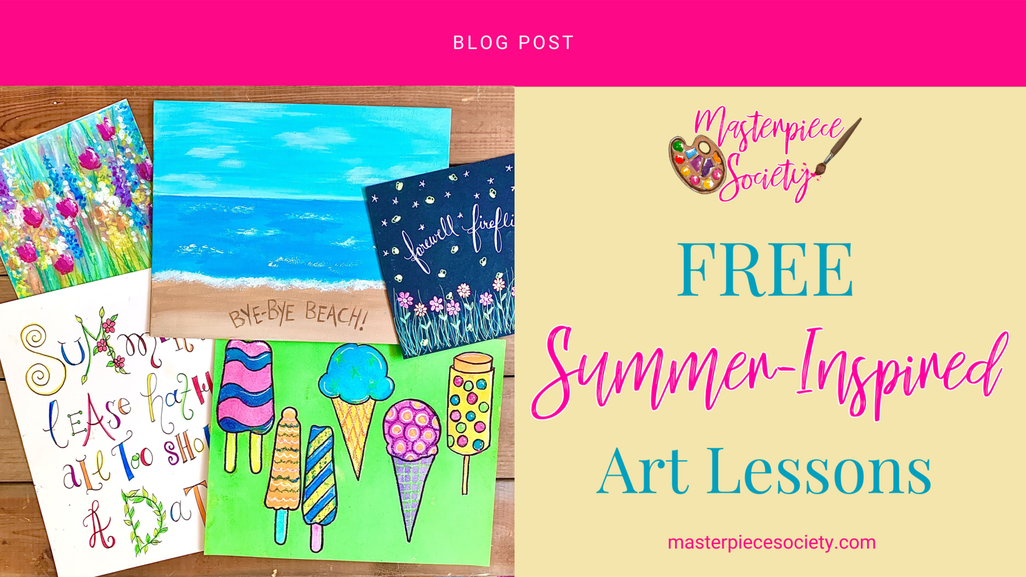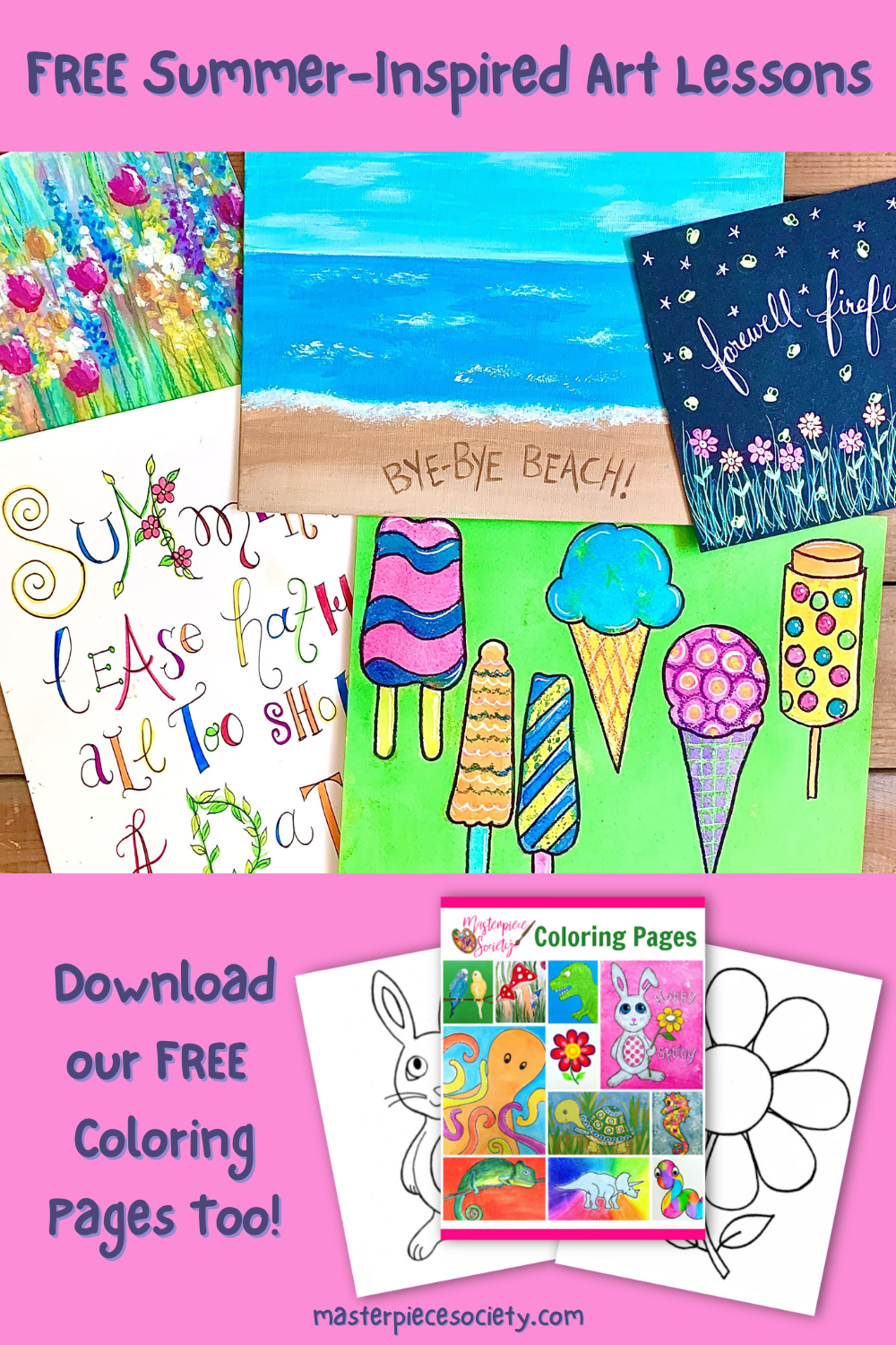 The Masterpiece Society has several summer-themed art courses to choose from, but we want to offer you these simple, fun, and COLORFUL summer-inspired are lessons for free!