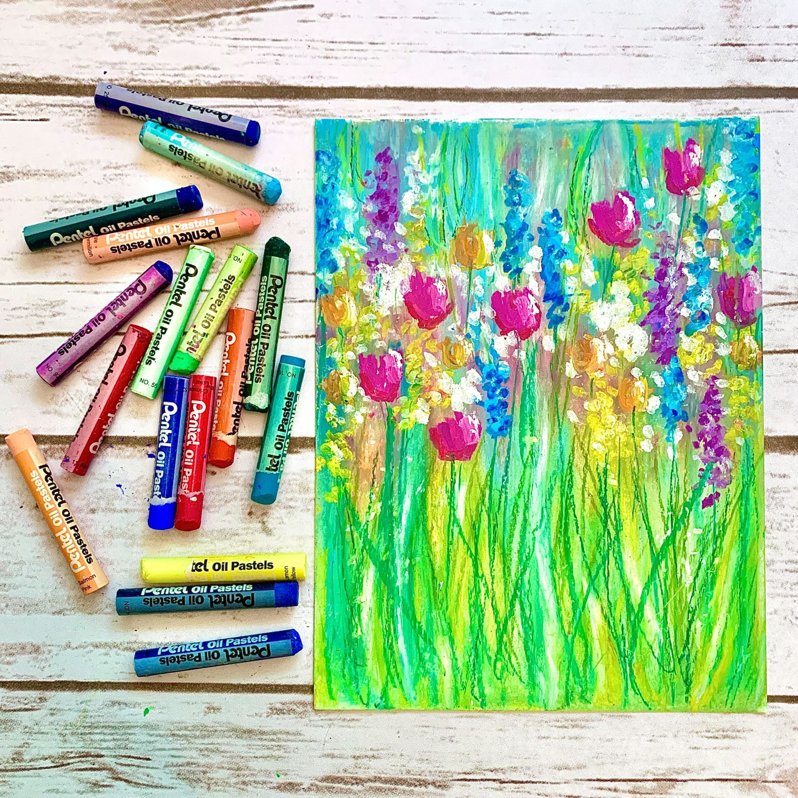 Lesson Two: We’ll Miss You, Wildflowers Oil Pastel Painting