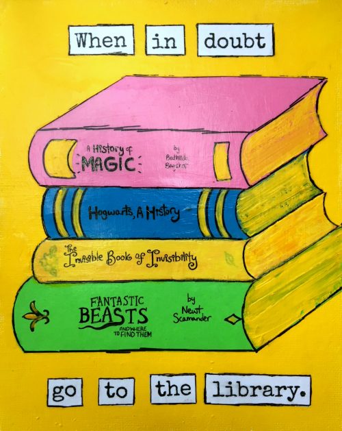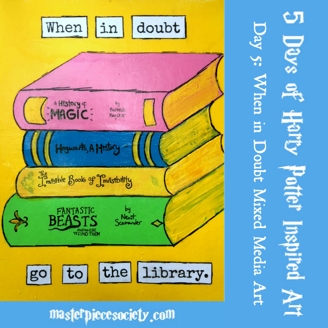 And we’ve made it to the last day of our Harry Potter inspired art projects!!! In this lesson, we’re going to create a mixed media, “When in Doubt, Go to the Library.”