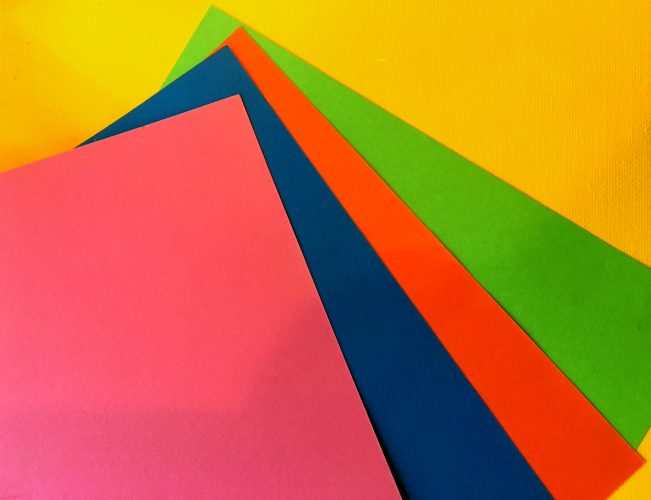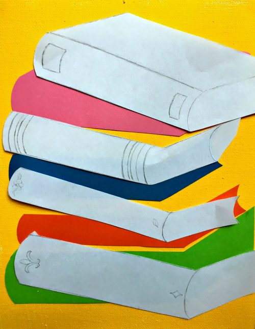 Step 2: Print out the PDF template for the stack of books and cut the different book shapes out. Since each book will have a different color, you’ll want to trace each book spine on a different piece of construction paper like this: