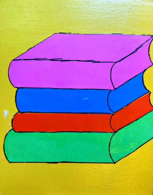 Step 4: When canvas is completely dry, go ahead and outline the books with a black pen or marker so that each book stands out from the other!